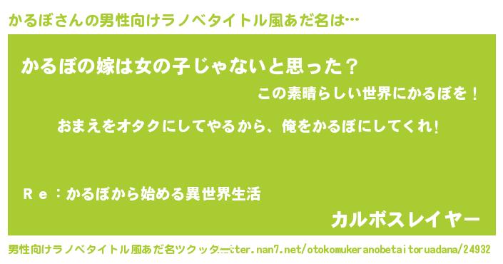 | 意味不明あだ名 | 『眠気覚ましガムかるぼ味』『自称かるぼ』 |