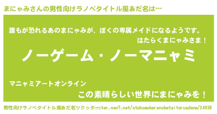 | ヒーロー風カッコイイあだ名 | 『慈愛の使者まにゃみ』『ネオマニャミ』 |