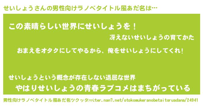 | ヘコむあだ名 | 『牛乳』『せいしょう(笑)』 |