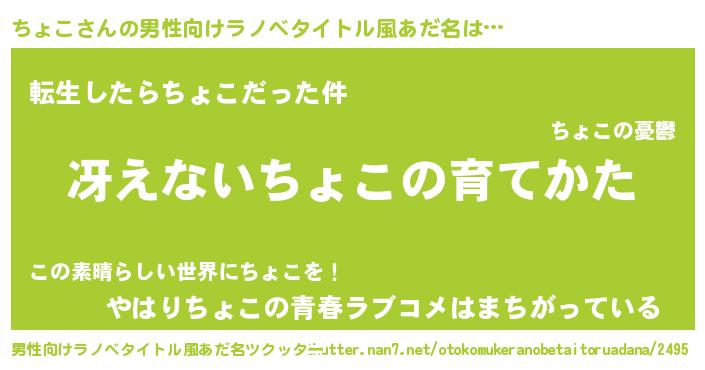 | 胡散臭い通販商品みたいなあだ名 | 『世界が平和になる高級そうな壺…その名も「ちょこ」』 |