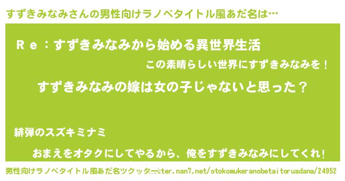 | 胡散臭い通販商品みたいなあだ名 | 『全米が絶賛したサプリメント…その名も「すずきみなみ」』 |