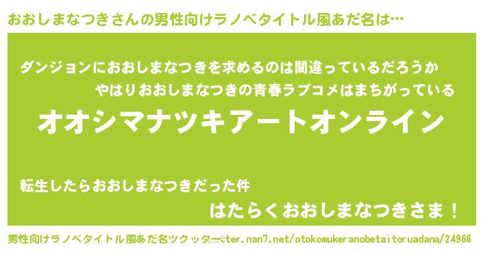 | 女子向けラノベタイトル風あだ名 | 『誰かこのおおしまなつきを説明してください! ~契約から始まるウェディング~』 |