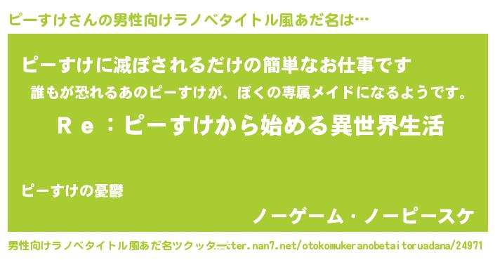 | 女子向けラノベタイトル風あだ名 | 『闇のピーすけ』『ピーすけ恋絵巻』 |