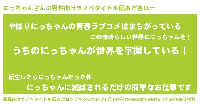 | 胡散臭い通販商品みたいなあだ名 | 『運命の人と巡り会える高級そうな絵画…その名も「にっちゃん」』 |