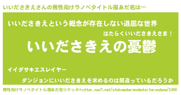 | 女子向けラノベタイトル風あだ名 | 『(仮)いいださきえのやんごとなき事情』 |