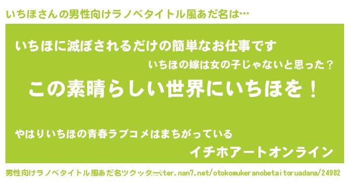 | 女子向けラノベタイトル風あだ名 | 『乙女ゲームの破滅フラグしかない悪役いちほに転生してしまった…』 |