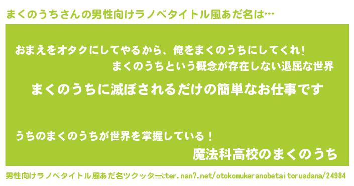 | ヒーロー風カッコイイあだ名 | 『慈愛の使者まくのうち』『銀牙騎士マク』 |