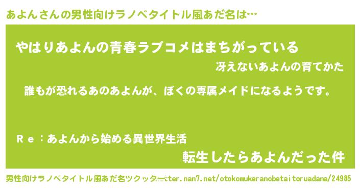 | ファンタジー風あだ名 | 『アヨディッシュ』『エターナルアヨンー』 |