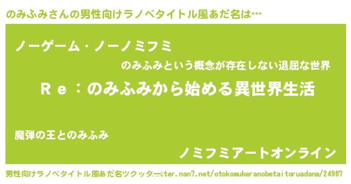| 女子向けラノベタイトル風あだ名 | 『のみふみストレイドッグス』 |