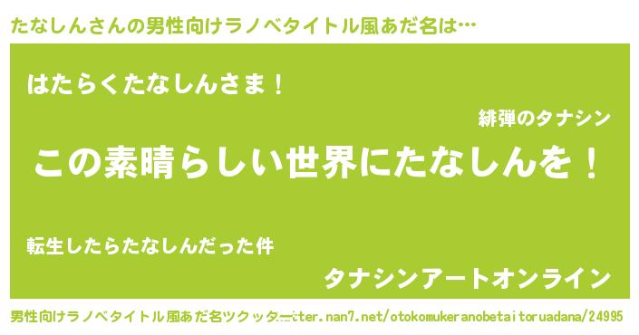 | 胡散臭い通販商品みたいなあだ名 | 『あなたにだけ特別に提供する100年もののヴィンテージワイン…その名も「たなしん」』 |