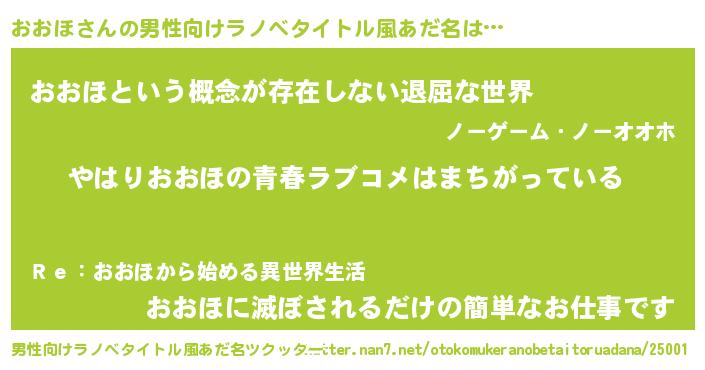 | 女子向けラノベタイトル風あだ名 | 『おおほの雑貨屋さん』 |