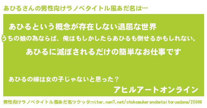 | 胡散臭い通販商品みたいなあだ名 | 『来世でも幸せになれる健康食品…その名も「あひる」』 |