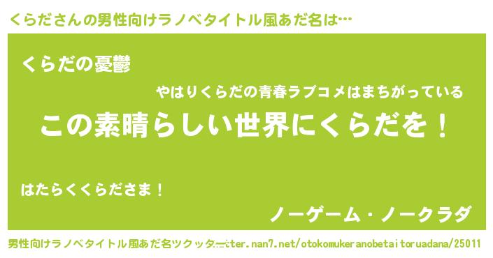 | 意味不明あだ名 | 『住所不定無職くらだ(91歳)』 |