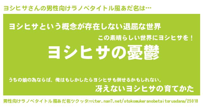 | 女子向けラノベタイトル風あだ名 | 『ヨシヒサ姫と円卓の騎士』 |