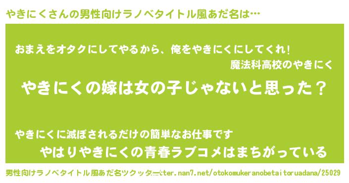 ヒーロー風カッコイイあだ名 | 『天弓騎士ヤキ』『慈愛の使者やきにく』 |