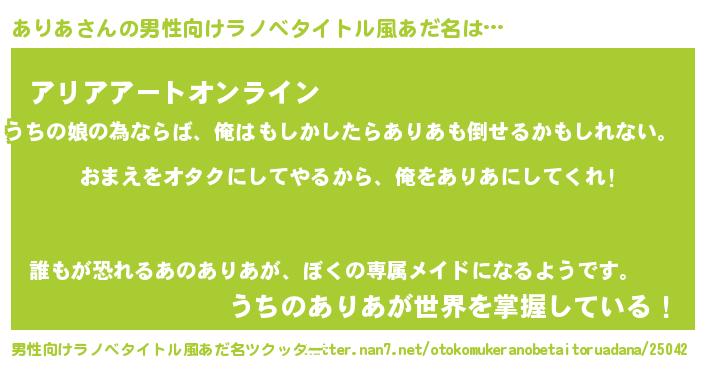 | 女子向けラノベタイトル風あだ名 | 『ありあ夫妻のなれそめ』 |