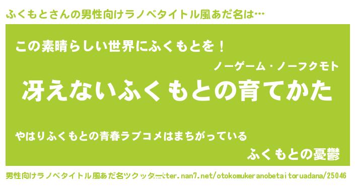 | 女子向けラノベタイトル風あだ名 | 『シンデレラふくもと家の靴箱館』 |