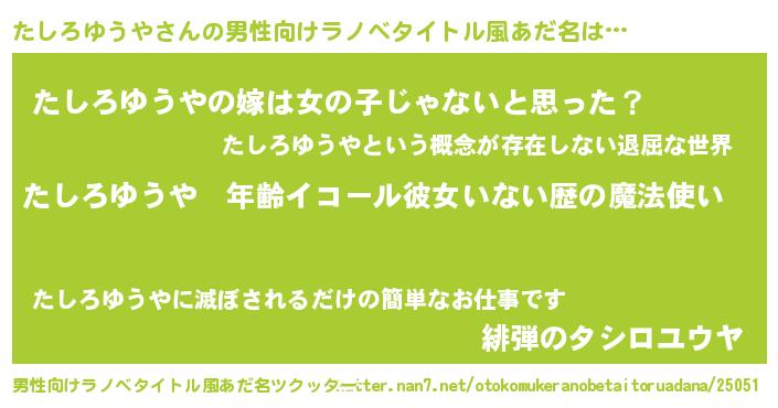 | 肩書あだ名 | 『たしろゆうや上級大将』 |
