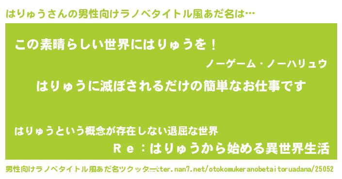 | 意味不明あだ名 | 『住所不定無職はりゅう(14歳)』 |