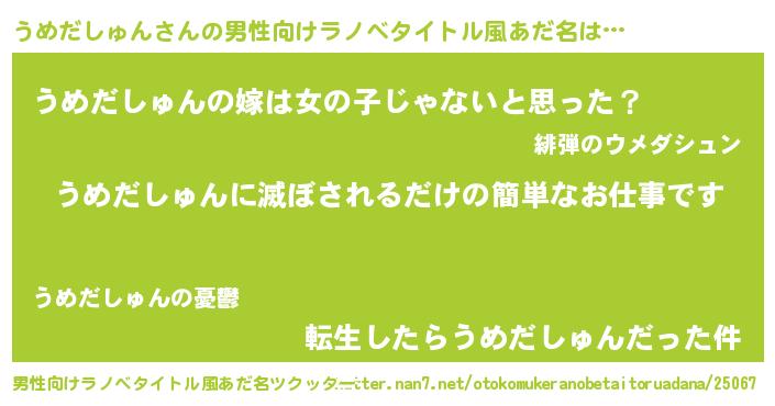 | 意味不明あだ名 | 『とにかく怪しいうめだしゅん』 |