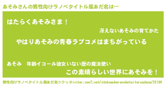 | 女子向けラノベタイトル風あだ名 | 『あそみの雑貨屋さん』 |