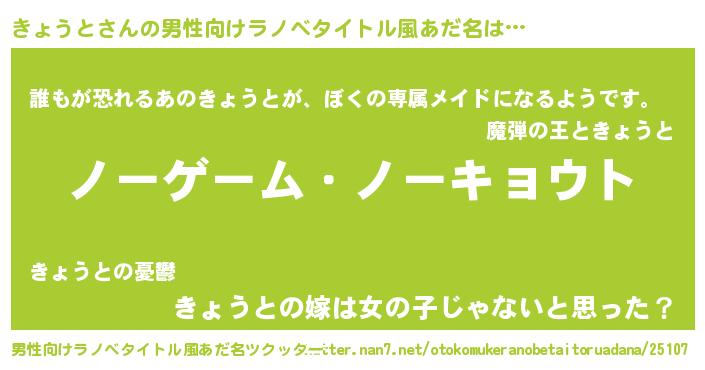 | 女子向けラノベタイトル風あだ名 | 『死神きょうとの再婚』 |