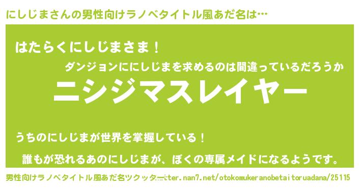 | 胡散臭い通販商品みたいなあだ名 | 『絶対に幸福をもたらす水素水…その名も「にしじま」』 |