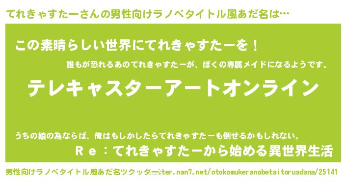 | 女子向けラノベタイトル風あだ名 | 『てれきゃすたー姫と円卓の騎士』 |