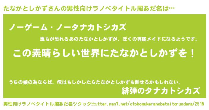 | 意味不明あだ名 | 『住所不定無職たなかとしかず(39歳)』 |