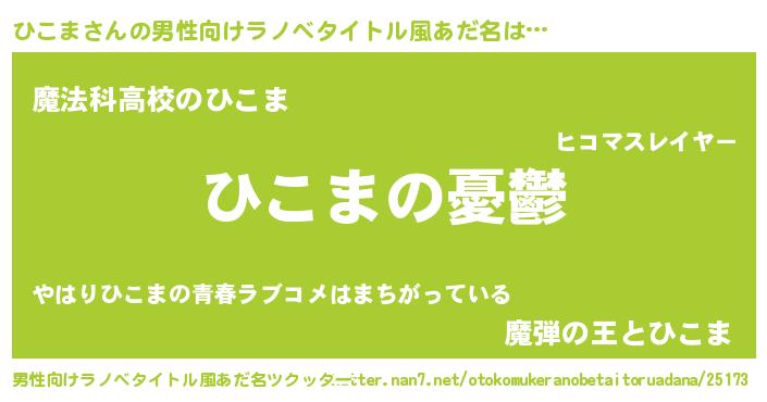 | 胡散臭い通販商品みたいなあだ名 | 『モテモテ間違いなし霊験あらたかなお札…その名も「ひこま」』 |