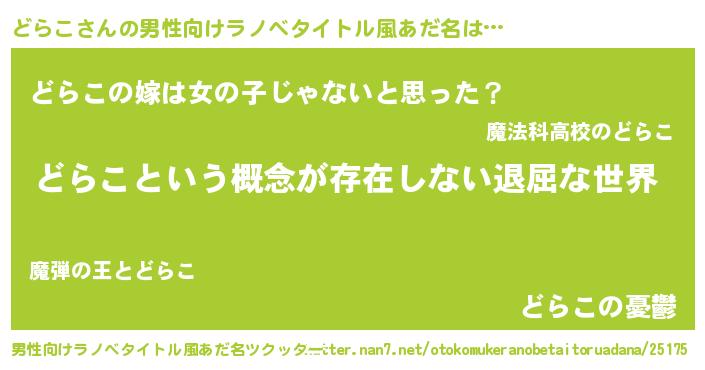 どらこさんの男性向けラノベタイトル風あだ名をツクッター!