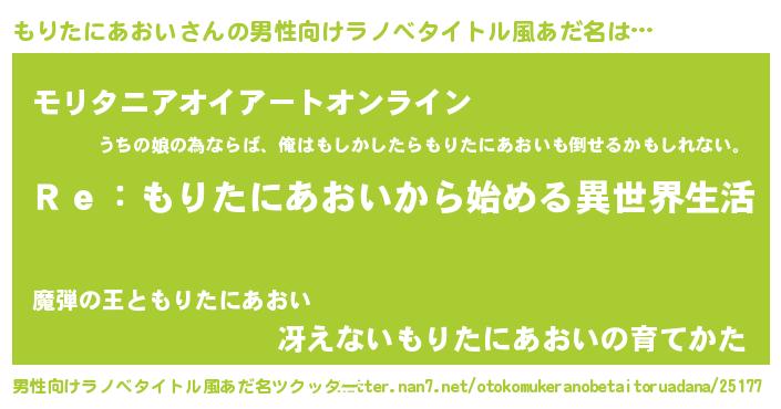 | 意味不明あだ名 | 『自称もりたにあおい』 |
