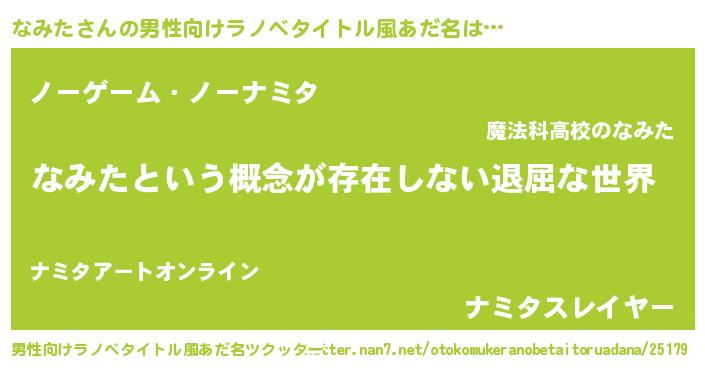 | ヒーロー風カッコイイあだ名 | 『ネオナミタ』『慈愛の使者なみた』 |