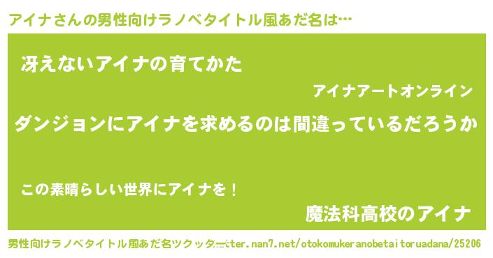 | 女子向けラノベタイトル風あだ名 | 『アイナは平凡を望む』 |