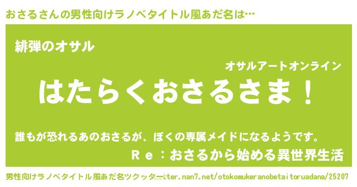 | 意味不明あだ名 | 『自称おさる』『ペロリンおさる』 |