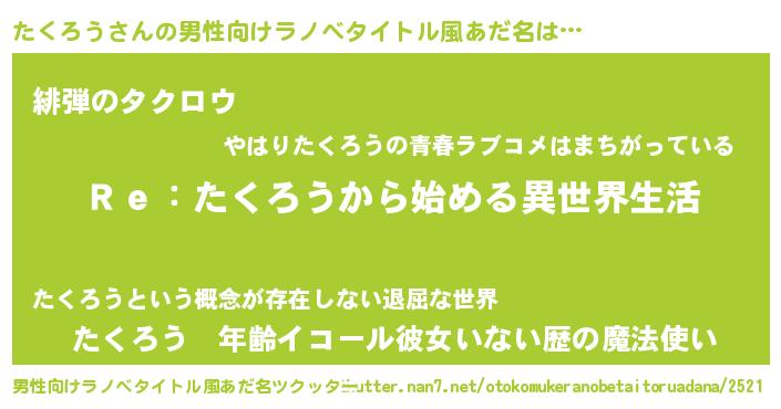 | 女子向けラノベタイトル風あだ名 | 『たくろうストレイドッグス』 |