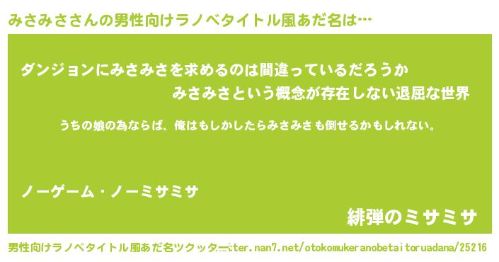 | 女子向けラノベタイトル風あだ名 | 『みさみさの婚約者』 |