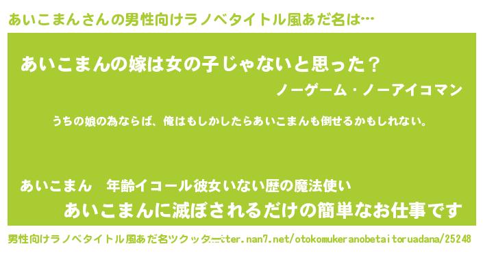 | 女子向けラノベタイトル風あだ名 | 『あいこまんの婚約者』 |