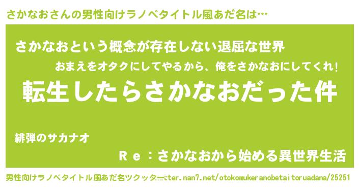 | ヘコむあだ名 | 『さかなお(小並感)』『さかもー』 |