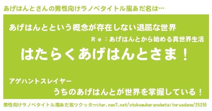 | ヘコむあだ名 | 『あげはんと(苦笑)』『あげもー』 |