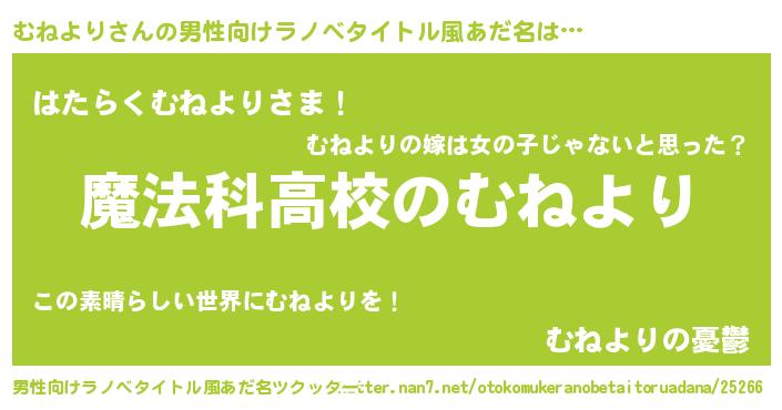 | 女子向けラノベタイトル風あだ名 | 『むねよりアンティーク』 |