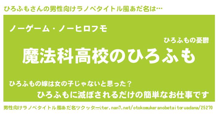 | 女子向けラノベタイトル風あだ名 | 『ひろふもなんてお断りですっ。』 |