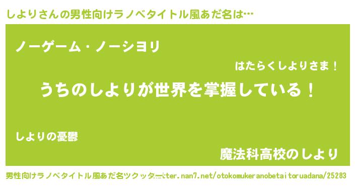 | 意味不明あだ名 | 『眠気覚ましガムしより味』『自称しより』 |