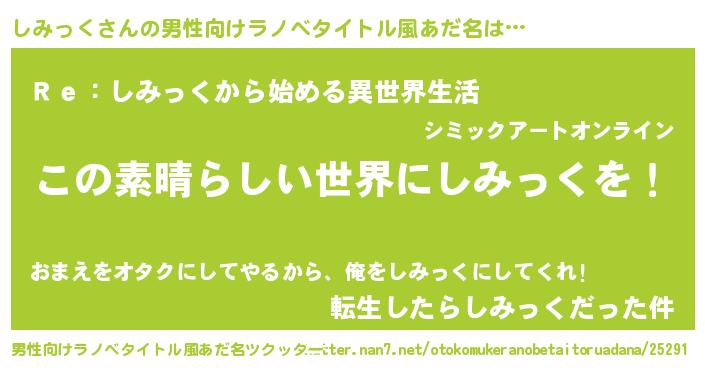 | 意味不明あだ名 | 『住所不定無職しみっく(4歳)』 |