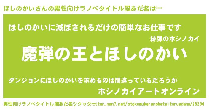 | 意味不明あだ名 | 『住所不定無職ほしのかい(13歳)』 |