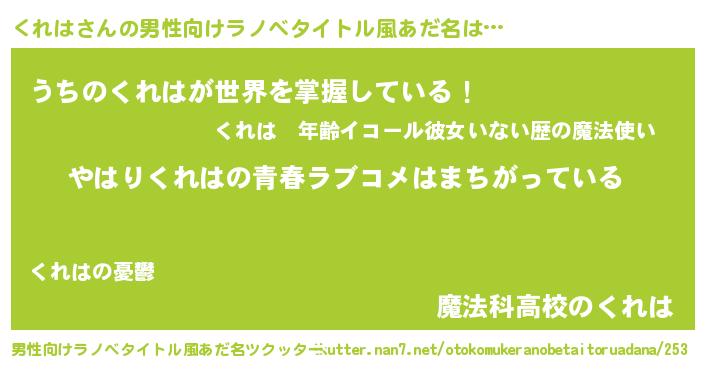 | 女子向けラノベタイトル風あだ名 | 『くれはの雑貨屋さん』 |