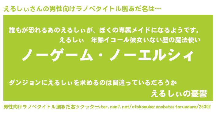 | 女子向けラノベタイトル風あだ名 | 『死神えるしぃの再婚』 |