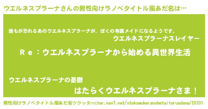 | 女子向けラノベタイトル風あだ名 | 『闇のウエルネスプラーナ』 |