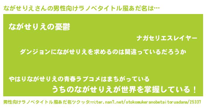 | 女子向けラノベタイトル風あだ名 | 『ながせりえは平凡を望む』 |