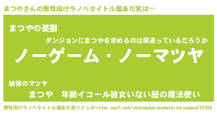 | 伝説のあだ名 | 『救世主となる占い師まつや』 |